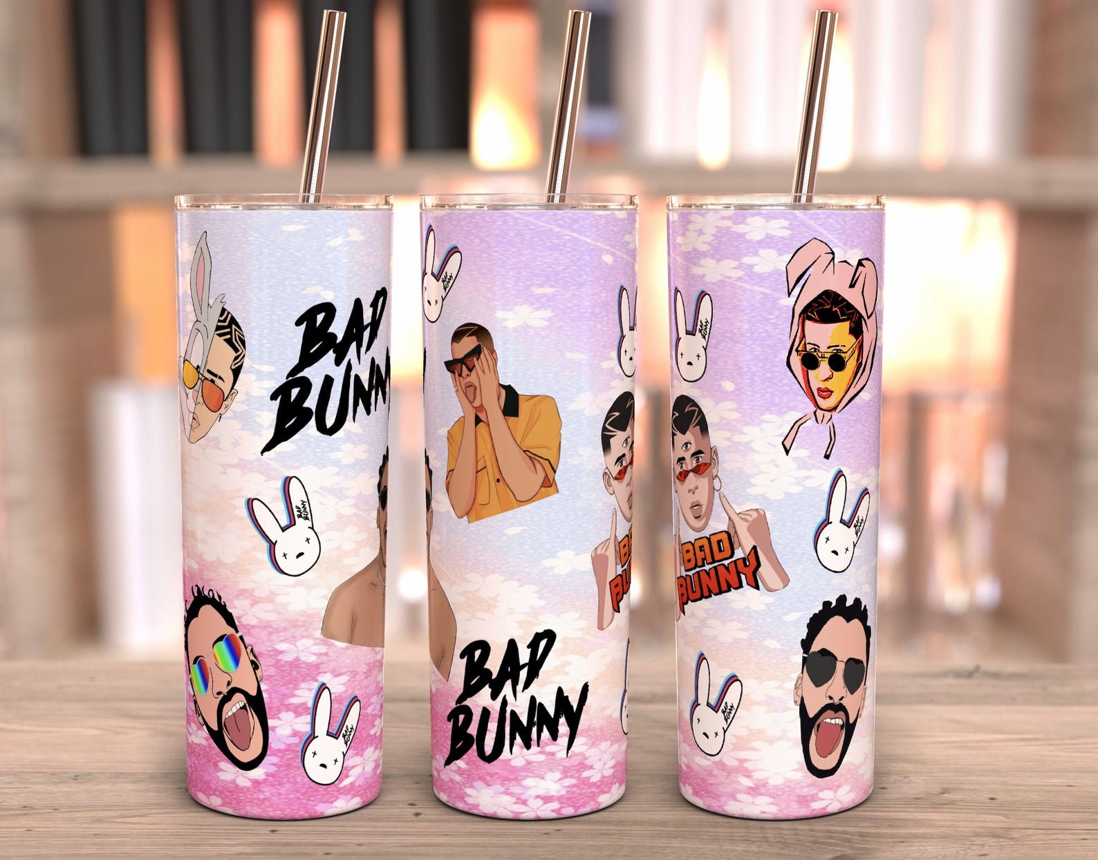 Bad Bunny Tumbler 20 Oz With Plastic Straw Etsy Canada